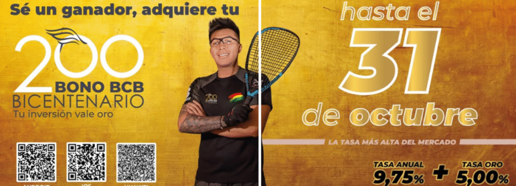 La Paz, 28 de octubre de 2025 .- El Banco Central de Bolivia recordó este martes que la venta del Bono BCB Bicentenario culminará el 31 de octubre, por lo que invitó a la población a adquirirlo por las amplias ventajas que ofrece en altos intereses, que ya logró ventas récord por más de Bs 520 millones.