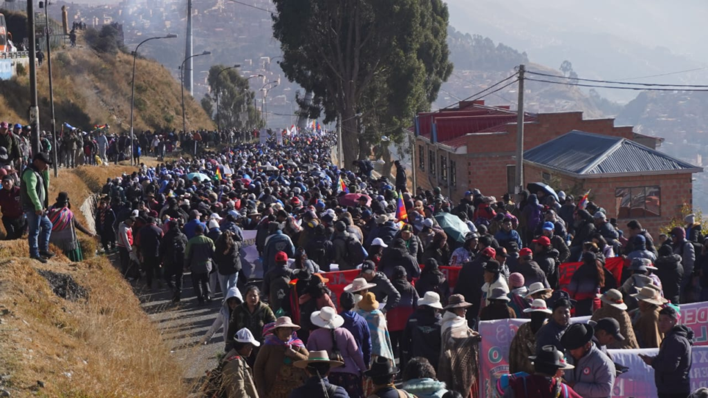 Miles de personas llegaron al punto de partida de la movilización, que descenderá por la avenida Naciones Unidas, hasta la zona Central de La Paz. Se prevé que la concentración de esa actividad ocurra en la plaza Murillo.