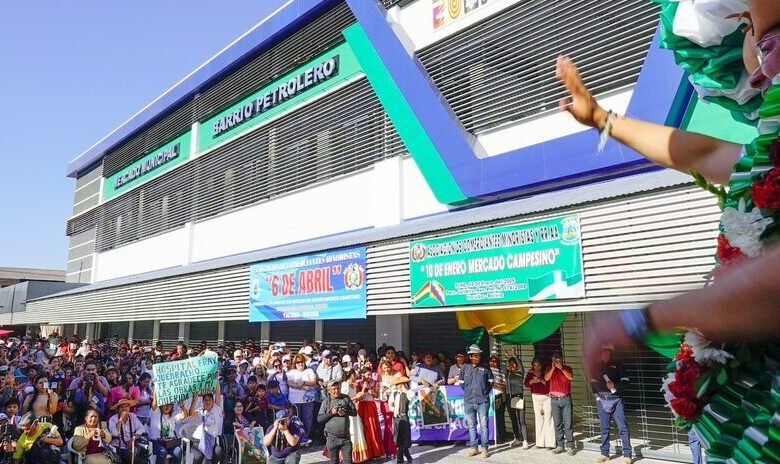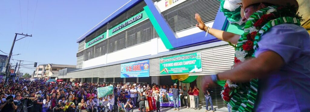 Yacuiba, Tarija, 30 de agosto de 2025. – Este sábado, el presidente Luis Arce inauguró el nuevo mercado municipal en el Barrio Petrolero de Yacuiba, Tarija, una infraestructura que requirió una inversión de Bs 49,4 millones y beneficiará a más de 650 comerciantes. Además, el mandatario entregó 85 viviendas sociales en la misma localidad.