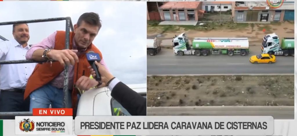 “Gasolina y diésel ya hay. La casa está desordenada y hay que ordenarla”, expresó Paz desde Achica Arriba, punto de partida de la caravana. El combustible será distribuido a las estaciones de servicio del departamento, cumpliendo la promesa de abastecimiento inmediato hecha durante su campaña.